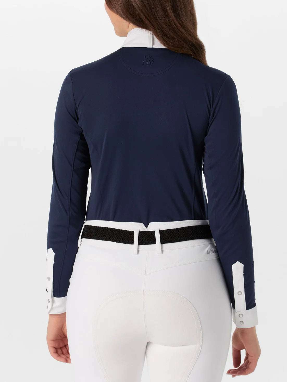Complete your show look with the Bib Front Long Sleeve Show Shirt from Ovation! The crisp bib front and formal white trim cuffs with gorgeous snaps give you that classic look while the princess side seams create a flattering, tailored fit. The stretch fabric moves with you so you won't have to worry about a stiff restrictive feel as you ride. With a hidden zip placket, you'll always have a smooth, put-together look while a stock tie loop at the back to add those finishing touches. Classic and elevated style with extra comfort, just what every equestrian wants in their show attire.