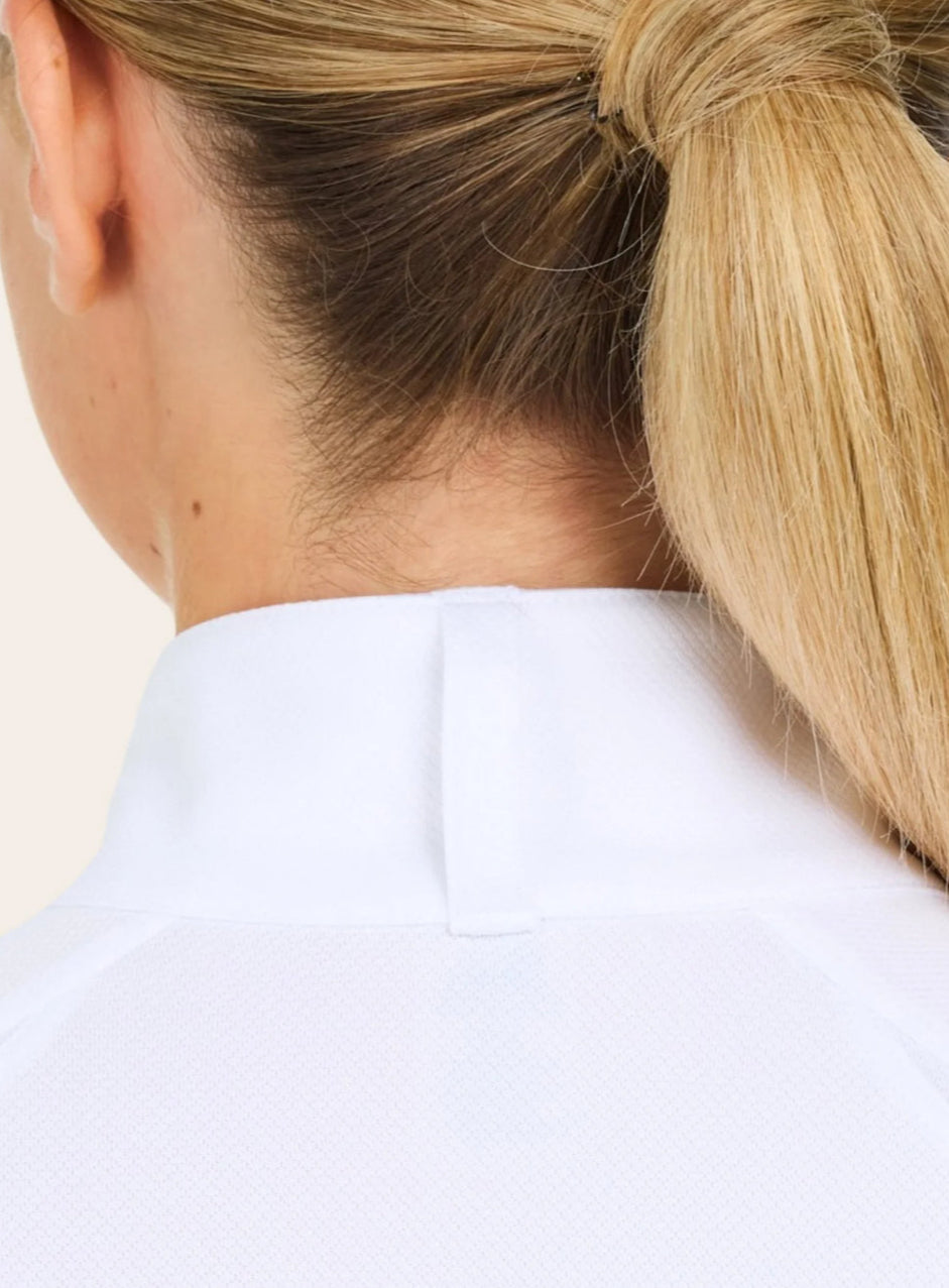 The Ava short sleeve show shirt is a classic staple piece for every rider's show clothing wardrobe. Modern seam lines, a zipper placket, and simple detailing make it the perfect choice for riders of all levels and styles. The wicking fabric also features UPF 30 sun protection for ultimate comfort and safety.